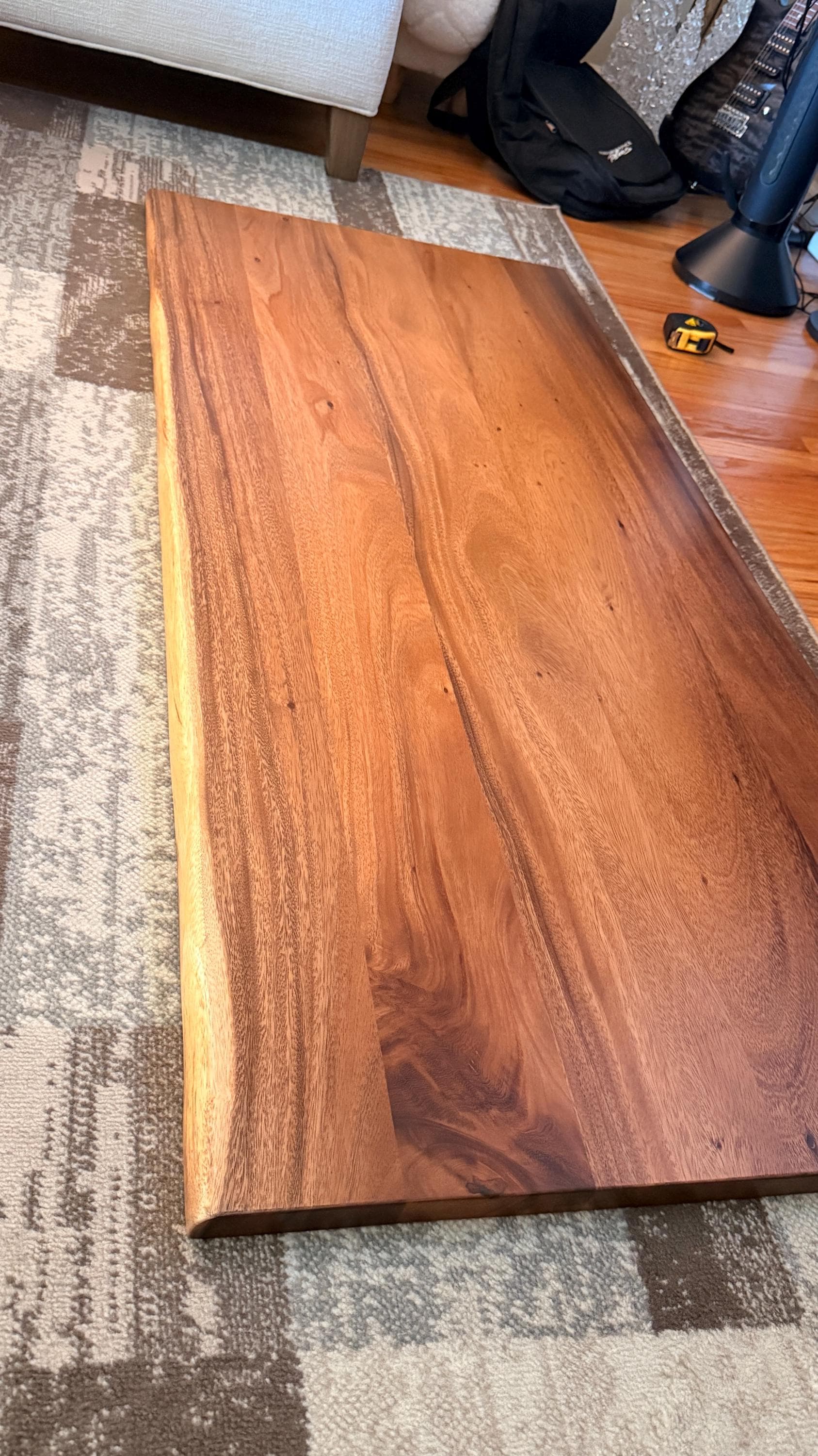 I'm very happy with this piece. It arrived on time and I was impressed with the packing which ensured that it arrived without any scratches. It came with nice pre-drilled holes for table legs / accessories which was nice (even though I had to drill some more to match the legs I had bought but that's on me). Additionally the seller was quick with communication. Would definitely recommend to others.