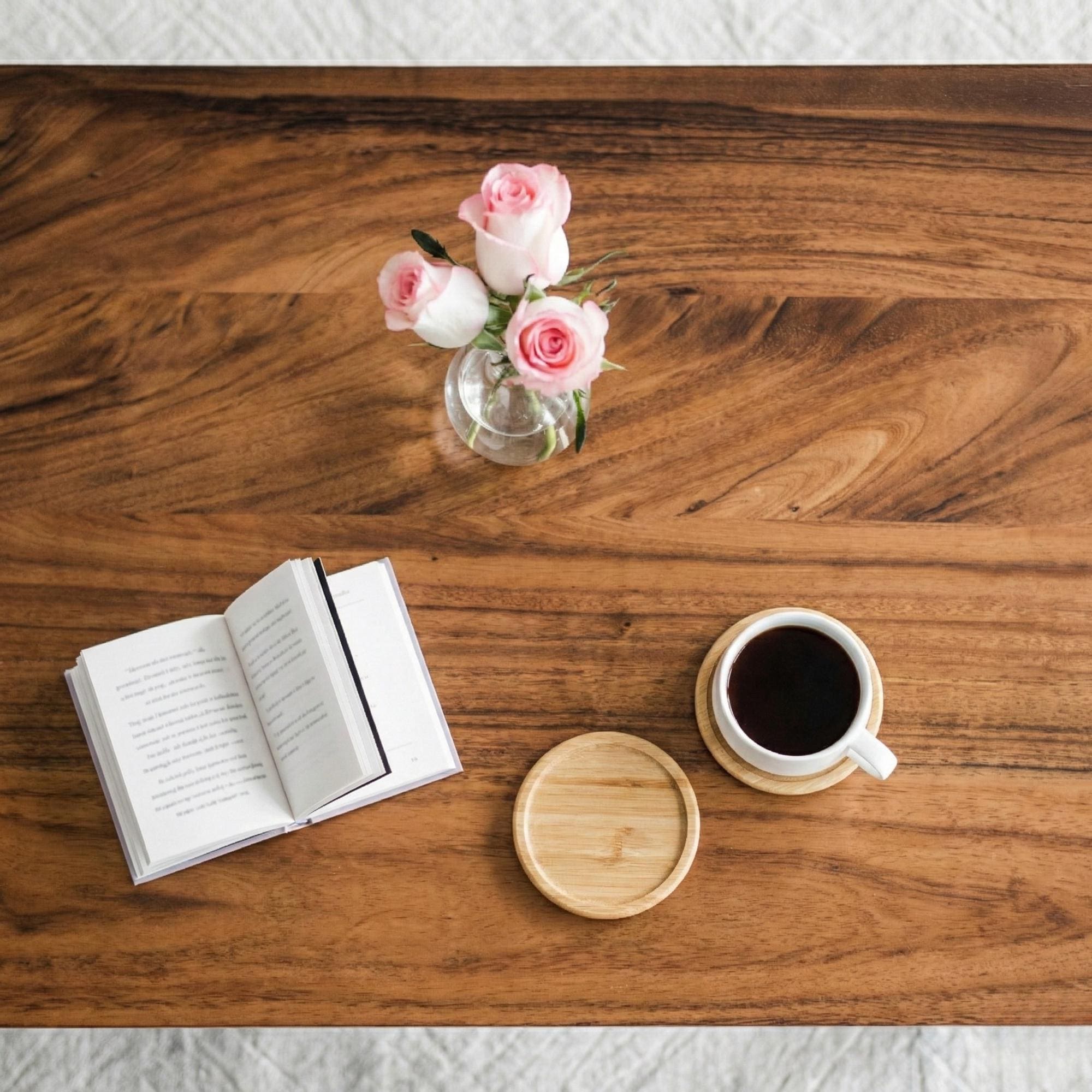 This table is gorgeous! The wood is beautifully finished, and I love how the top design coordinates the grain. Shipping was fast and delivery simple. I couldn't be happier with this purchase. Highest recommendation!