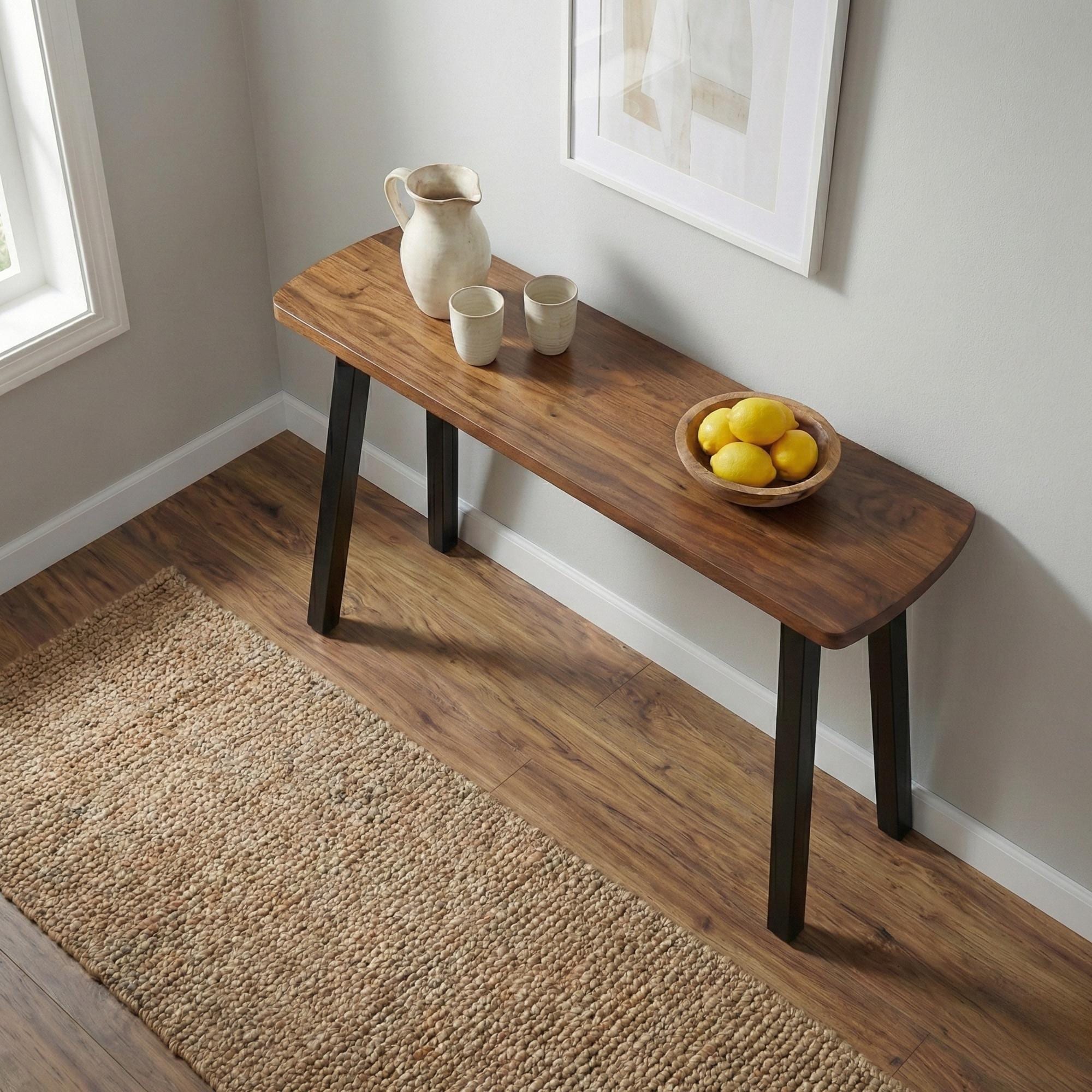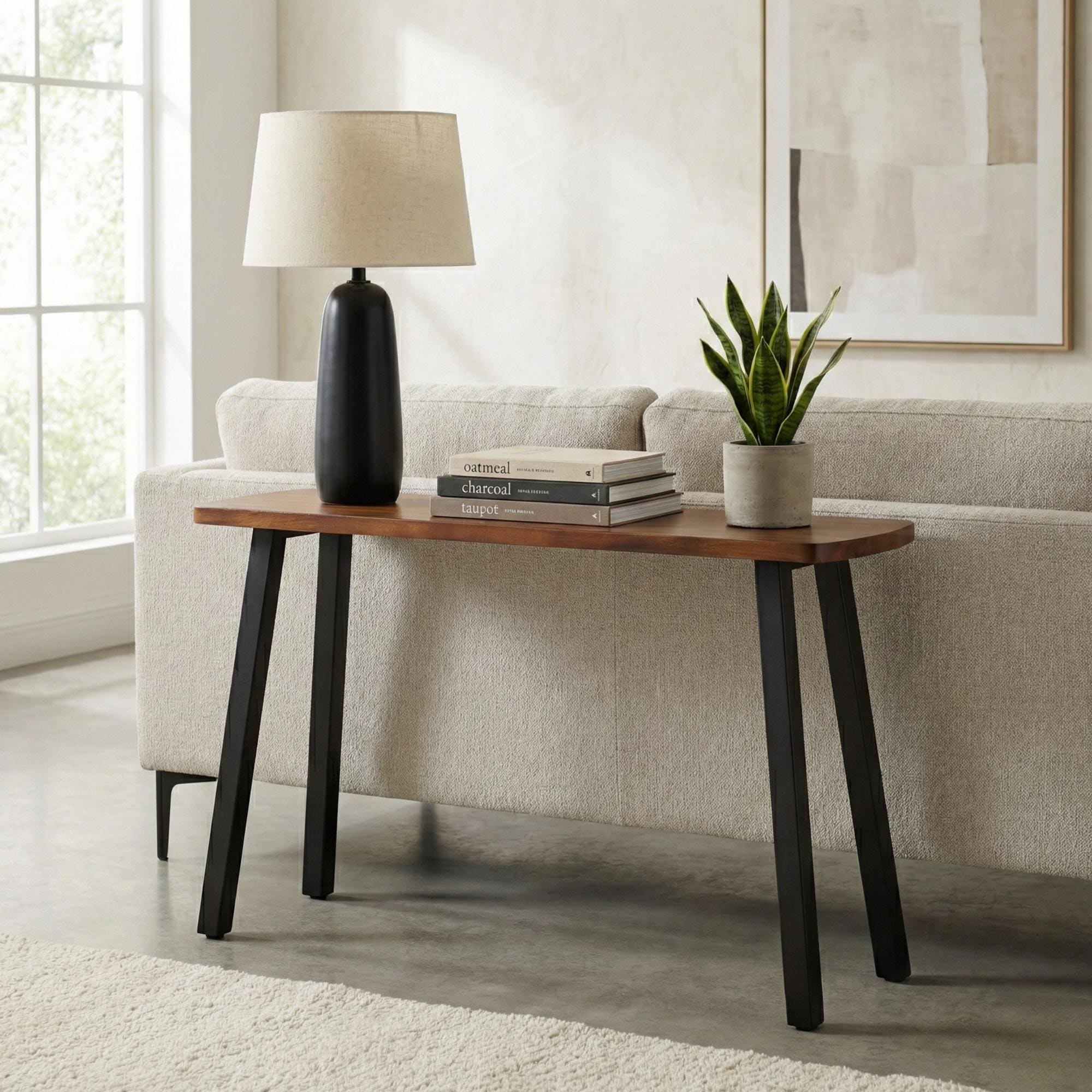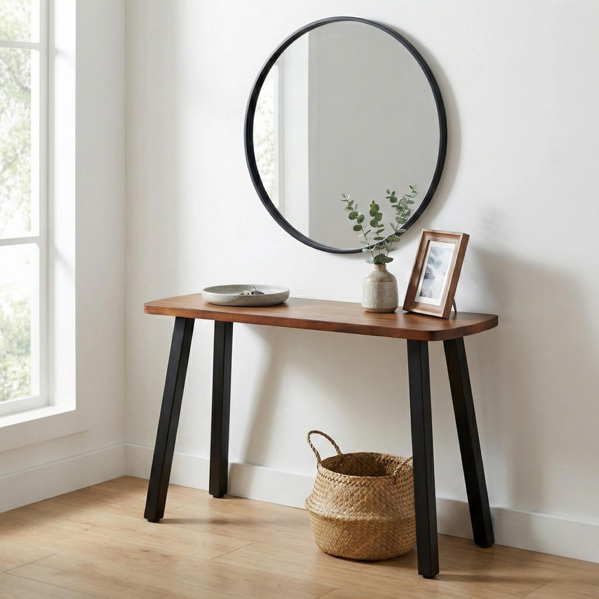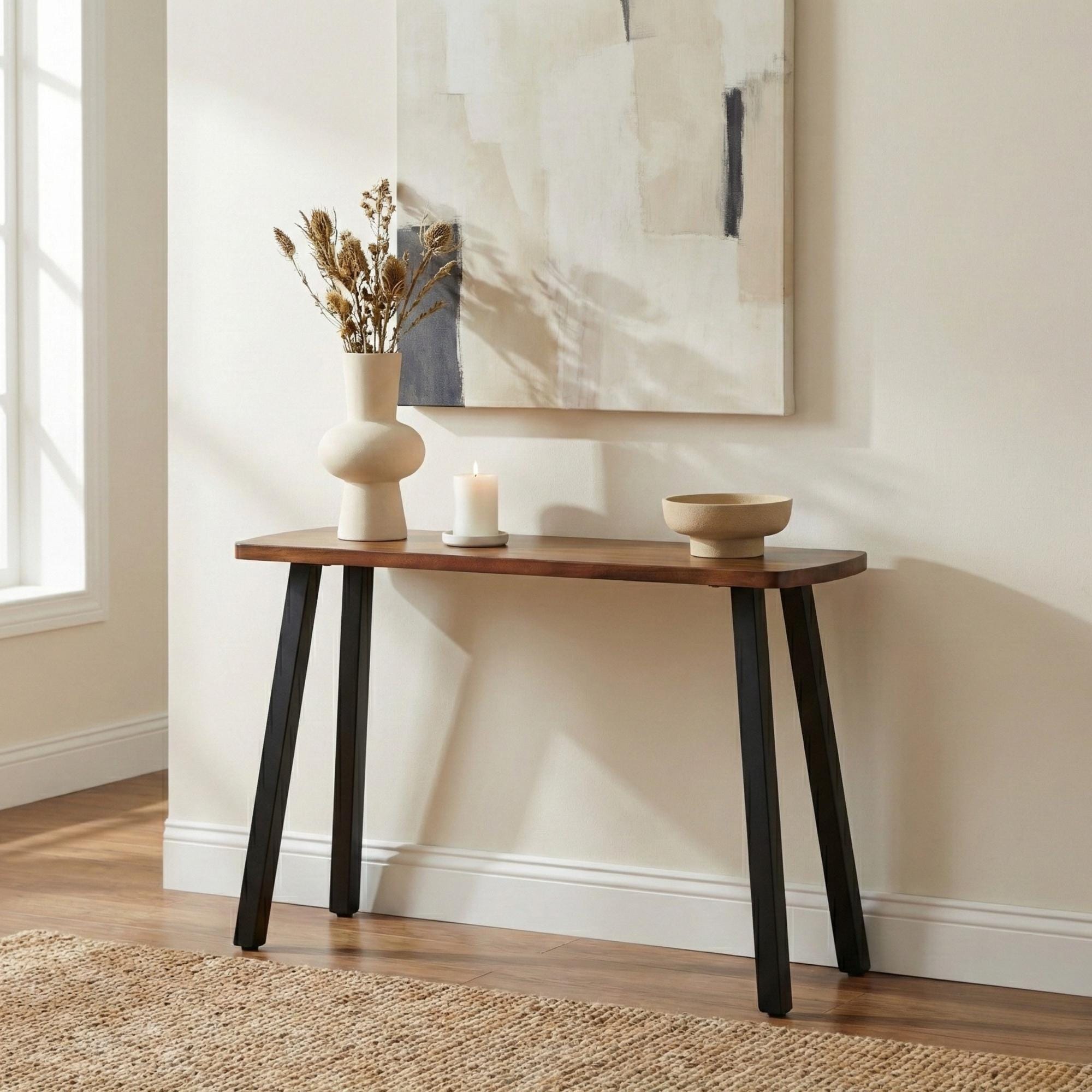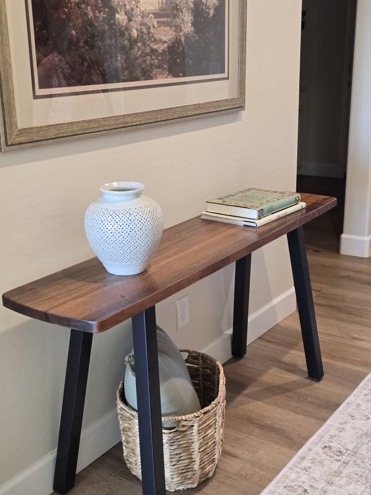 The walnut console is perfect! The quality of the wood is amazing and the powder-coated steel legs are substantial while remaining elegant. Perfect choice for our foyer. 5 star customer service- highly responsive and professional. 👍. The very minor shipping bobble was on FedEx and not the sellers!! ⭐⭐⭐⭐⭐⭐